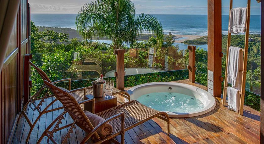 Varanda de 25M² com hidromassagem para casal e chaises longs