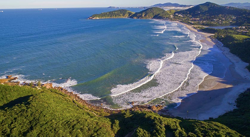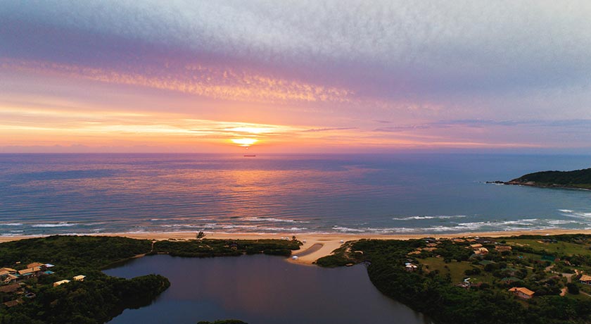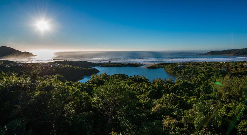 Situada a 70 Km ao sul de Florianópolis – capital de Santa Catarina - a Praia do Rosa (Imbituba/SC) é uma baía rodeada de morros, lagoas e ilhas, onde a mata nativa e o mar cristalino compõem um cenário privilegiado no litoral brasileiro. Pela beleza cênica, por fazer parte da Área de Proteção Ambiental (APA) da Baleia Franca e por estar na Reserva da Biosfera da Mata Atlântica, o Rosa é a única representante brasileira no seleto Clube das Baías Mais Belas do Mundo (www.world-bays.com), ONG com chancela da Unesco. De um lado, as águas perfeitas para o surf, esportes naúticos – windsurf, kitesurf – e os lúdicos banhos de lagoa. De outro, a exuberância da Serra do Mar que permite cavalgadas, trilhas ecológicas, observação de pássaros. Escolhas para todos os gostos.
